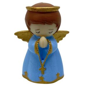 Imagem Anjinho Rezando Azul em Biscuit Resina 7 cm