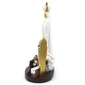 Imagem Aparições de Nossa Senhora de Fatima Importada Resina 32 cm Nossa Senhora de Fátima é uma das mais conhecidas aparições marianas na história da Igreja Católica. As aparições ocorreram em 1917, na cidade de Fátima, em Portugal, para três jovens pastores: Lúcia dos Santos e seus primos, Jacinta e Francisco Marto. Aqui está um resumo das principais aparições e mensagens associadas a Nossa Senhora de Fátima: Aparição de maio: No dia 13 de maio de 1917, Nossa Senhora apareceu aos três pastores enquanto eles estavam cuidando de suas ovelhas. Ela pediu-lhes que voltassem ao mesmo local no dia 13 dos meses seguintes. Na primeira aparição, ela pediu que rezassem o terço todos os dias pela paz no mundo. Aparição de junho: Nessa aparição, Nossa Senhora pediu que os pastorinhos continuassem a rezar o terço todos os dias e revelou que Jacinta e Francisco em breve iriam para o céu, mas Lúcia ainda tinha um propósito a cumprir na Terra. Aparição de julho: Nesta aparição, Nossa Senhora de Fátima revelou aos pastorinhos três segredos conhecidos como os Três Segredos de Fátima. Os segredos envolviam visões do inferno, o fim da Primeira Guerra Mundial e o início da Segunda Guerra Mundial, bem como a perseguição da Igreja e a necessidade de consagração da Rússia ao Imaculado Coração de Maria. Aparições de agosto e setembro: Nossa Senhora não apareceu aos pastorinhos em agosto, pois foram presos pelas autoridades locais que duvidavam das aparições. No entanto, no dia 19 de agosto, Nossa Senhora apareceu-lhes quando foram libertados e pediu que continuassem a rezar o terço pela conversão dos pecadores. Em setembro, ela também reiterou esse pedido. Aparição de outubro Milagre do Sol : No dia 13 de outubro, cerca de 70.000 pessoas testemunharam o chamado Milagre do Sol. O sol parecia se mover, girar e emitir diferentes cores no céu. Esse evento extraordinário fortaleceu a crença nas aparições e atraiu uma grande multidão ao local. As aparições de Nossa Senhora de Fátima tiveram um impacto significativo na devoção mariana e na espiritualidade católica. As mensagens transmitidas enfatizaram a importância da oração, do sacrifício e do arrependimento dos pecados, bem como a busca pela paz e a conversão dos corações. A devoção a Nossa Senhora de Fátima continua a ser venerada por muitos católicos em todo o mundo.