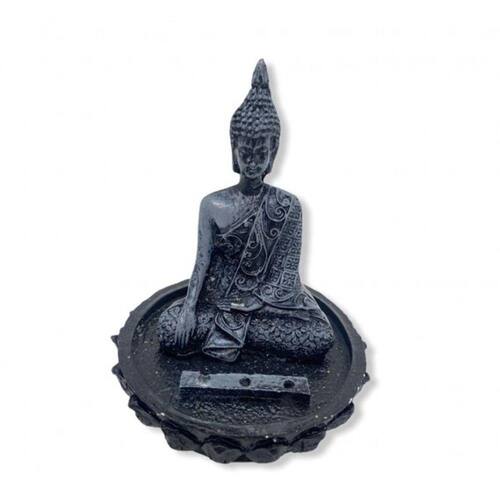 Imagem Buda Preto Incensário Resina Estatua 11 cm