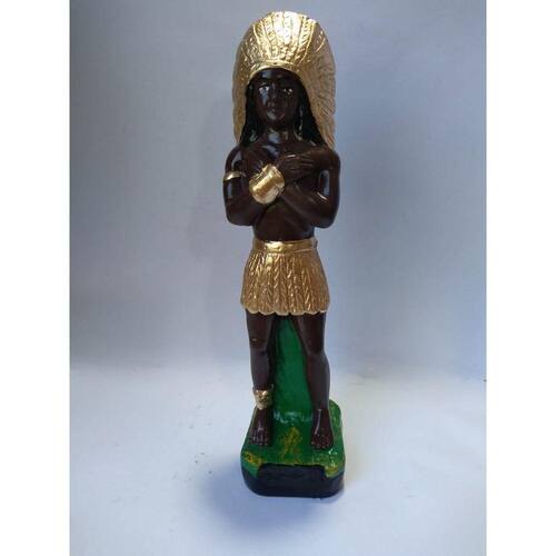 Imagem Caboclo Pena Dourada Em Pe Escultura Gesso 20 Cm