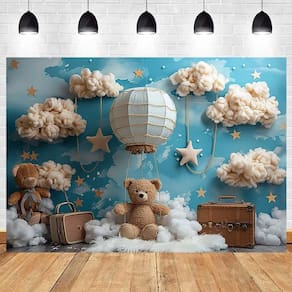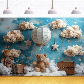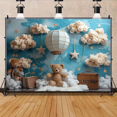 -?Tamanho e embalagem?: 5 pés (largura) x 3 pés (altura), fundo fotográfico de chá de bebê Hot Air Balloon Bear. Apenas pano de fundo incluído, sem suporte; item enviado dobrado.