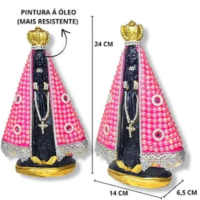 todas nossas fotos e vídeos são reais, tiradas por nossa equipe buscando passar maior transparência para nossos clientes. = = = = = = = = = = = = = = = = = = = = = = = descrição = = = = = = = = = = = = = = = = = = = = = = = esta imagem de nossa senhora aparecida tem 24 cm de altura e é decorada com pérolas e strass, produzida em gesso com um excelente acabamento. Seu visual traz um toque todo especial a qualquer ambiente além de proteção espiritual pessoas com fé costumam criar um cantinho especial em casa, ou no ambiente de trabalho, como uma espécie de santuário com um oratório ou capela em que ficam expostas todos os santos de sua devoção o que você vai receber em sua casa conteúdo da embalagem - 1nossa senhora de 24 cm