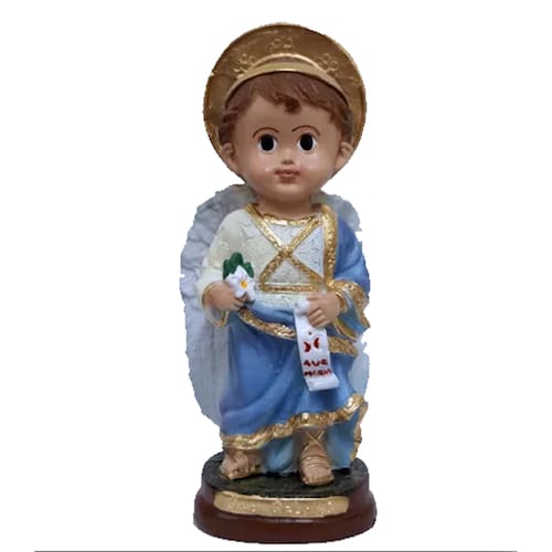São Gabriel linha infantil - Imagem de São Gabriel linha infantil de 15cm feita em gesso cerâmico resinado ou resina super-resistente, junto com outros materiais selecionados para dar à sua imagem um alto padrão de qualidade e durabilidade.