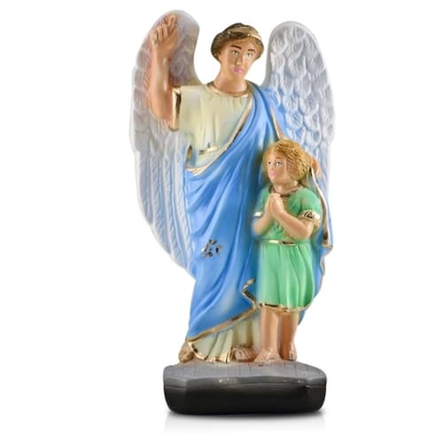Anjo da Guarda - Imagem do Anjo da Guarda de 20cm feita em gesso cerâmico resinado ou resina super-resistente, junto com outros materiais selecionados para dar à sua imagem um alto padrão de qualidade e durabilidade.