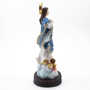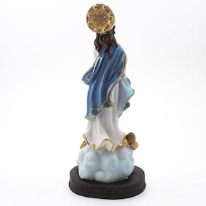 Imagem imaculada conceição resina 21 cm imaculada conceição refere-se a um dogma através do qual a igreja declarou que a concepção da virgem maria foi sem a mancha mácula em latim do pecado e declara também que a vida da virgem maria transcorreu completamente livre de pecado. Santa bernadete que viu nossa senhora em lourdes, disse que ela se auto intitulou: eu sou a imaculada conceição. Dimensões: altura: 21 cm - largura: 9 cm - profundidade: 8 cm dimensões aproximadas do produto. Produto pintado a mão, podendo sofrer variações de cores. Marca: Amém Decoração Religiosa