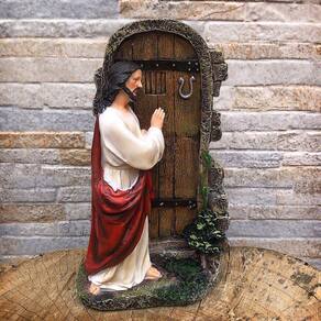 Imagem Jesus Bate à Porta Importado Resina 20 cm Jesus bate à porta, é uma imagem com referência a uma passagem bíblica. eis que estou à porta e bato. Se alguém ouvir a minha voz e abrir a porta, entrarei e cearei com ele, e ele comigo. Apocalipse 3:20 Dimensões: altura: 22cm - Largura: 12 cm - Profundidade: 7 cm Dimensões aproximadas do produto. Produto pintado a mão, podendo sofrer variações de cores. Marca: Amém Decoração Religiosa Ean: 6988051053333