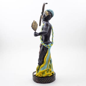 Imagem Logunedé Luxo Resina 34 cm Logunedé é o Orixá da pesca e da caça, considerado um dos mais belos, ele é filho de Oxóssi e Oxum e herdou o jeito meigo e a graça de Oxum e a felicidade e o espírito caçador de Oxóssi. É um exímio caçador, seja em terra ou águas ele sabe usar a paciência e sabedoria para alcançar o que deseja e a sua beleza encanta e arranca suspiros e prende olhares. Ele divide sua vida em dois períodos no ano, por 6 meses ele acompanha o seu pai nas matas e nos outros 6 meses ele convive com sua mãe nos rios.