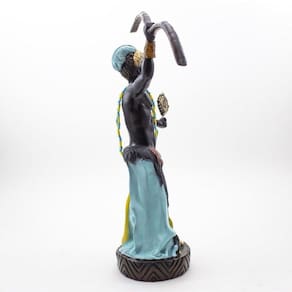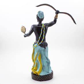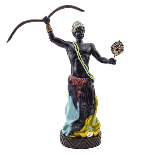 Imagem Logunedé Luxo Resina 34 cm Logunedé é o Orixá da pesca e da caça, considerado um dos mais belos, ele é filho de Oxóssi e Oxum e herdou o jeito meigo e a graça de Oxum e a felicidade e o espírito caçador de Oxóssi. É um exímio caçador, seja em terra ou águas ele sabe usar a paciência e sabedoria para alcançar o que deseja e a sua beleza encanta e arranca suspiros e prende olhares. Ele divide sua vida em dois períodos no ano, por 6 meses ele acompanha o seu pai nas matas e nos outros 6 meses ele convive com sua mãe nos rios.