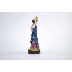 Imagem Mãe Rainha Resina 15 cm Imagem de Maria, inspirado no quadro do italiano Crosio, recebeu o nome de Mãe Três Vezes Admirável. Com o decorrer da história, foi chamado de Mãe, Rainha e Vencedora Três Vezes Admirável de Schoenstatt, e no Brasil Mãe e Rainha. Dimensões: altura: 15 cm - Largura: 6 cm - Profundidade: 5 cm Dimensões aproximadas do produto. Produto pintado a mão, podendo sofrer variações de cores. Marca: Amém Decoração Religiosa Ean: 7890499231046