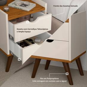 Características: - Pintura ultravioleta; - 2 gavetas com puxadores novo designer; - Corrediças telescópica; - Pés em Polipropileno. - 1 Nicho superior -Peso máximo por gaveta 5kg