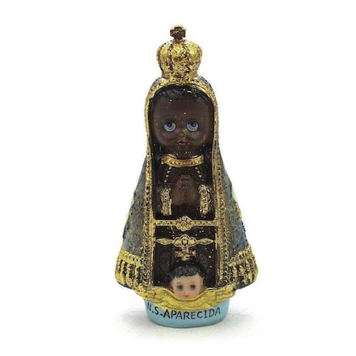 Imagem Nossa Senhora Aparecida Infantil Importada Resina 12 cm Nossa Senhora da Conceição Aparecida é a padroeira do Brasil e uma das principais santas católicas. Segundo a tradição católica, a imagem da santa foi encontrada no rio Paraíba do Sul por três pescadores em 1717. A partir desse momento, Nossa Senhora Aparecida se tornou um símbolo de devoção e fé para o povo brasileiro. A data litúrgica de Nossa Senhora Aparecida é celebrada em 12 de outubro, que também é o Dia das Crianças no Brasil. A devoção à santa é muito forte no país e a imagem da Nossa Senhora Aparecida está presente em igrejas, casas e locais públicos em todo o território nacional. Dimensões: altura: 13 cm - Largura:7 cm - Profundidade: 4 cm Dimensões aproximadas do produto. Produto pintado a mão, podendo sofrer variações de cores. Marca: Amém Decoração Religiosa