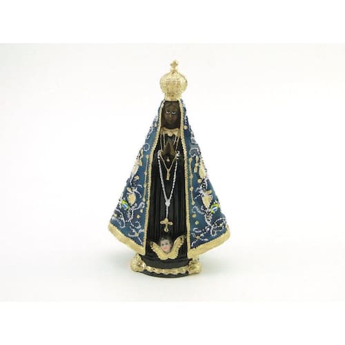 Imagem Nossa Senhora Aparecida Resina 15 cm Nossa Senhora da Conceição Aparecida é denominada a padroeira do Brasil. Dimensões: altura: 15 cm - Largura: 9 cm - Profundidade: 5 cm Dimensões aproximadas do produto. Produto pintado a mão, podendo sofrer variações de cores. Marca: Não Informado