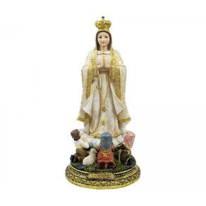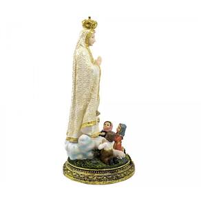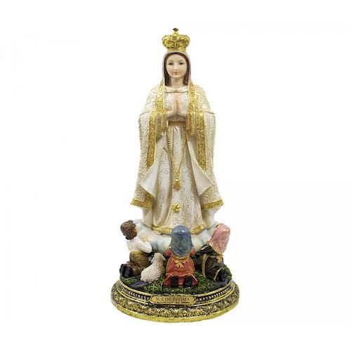 Enfeite decorativo em forma da imagem de Nossa Senhora de Fátima de 50 cm de altura.