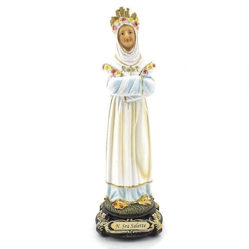 Imagem Nossa Senhora de La Salette Importada Resina 21 cm Nossa Senhora de La Salette, é a invocação dada à Virgem Maria nas suas aparições na montanha de La Salette, nos Alpes franceses, para duas crianças: Maximin Giraud com 11 anos e Mélanie Calvat com 15 anos em 1846.Dimensões: altura: 21 cm - Largura: 7 cm - Profundidade: 7 cmDimensões aproximadas do produto.Produto pintado a mão, podendo sofrer variações de cores. Marca: Amém Decoração Religiosa