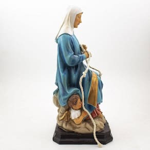 Imagem Nossa Senhora Desatadora dos Nós Sentada Importada Resina 30 cm Nossa Senhora Desatadora dos Nós: Esse titulo da Virgem Maria, se originou na Alemanha. A imagem se apresenta com um anjo entregando as mãos de Maria uma fita com nós de diversos tamanhos e do outro lado um anjo recebendo a fita sem nós. Eles representam o pecado, que são desfeitos por Nossa Senhora. Dimensões: altura: 30 cm - Largura: 14 cm - Profundidade: 13 cmDimensões aproximadas do produto.Produto pintado a mão, podendo sofrer variações de cores. Marca: Amém Decoração Religiosa