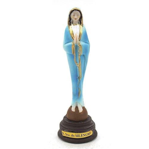 Imagem Nossa Senhora do Silêncio Azul Resina 13 cm Nossa Senhora do Silêncio: Nossa Senhora apareceu em uma aldeia de Knock Dublin , sem dizer uma palavra, nem por isso que ela não fala ao coração de cada um de nós.Dimensões: altura: 13 cm - Largura: 4 cm - Profundidade: 4 cmDimensões aproximadas do produto.Produto pintado a mão, podendo sofrer variações de cores. Marca: Amém Decoração Religiosa
