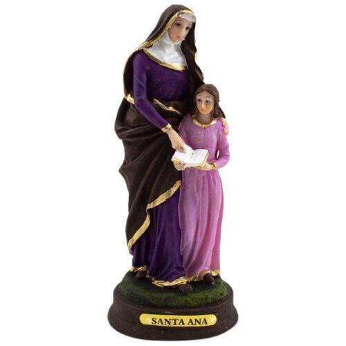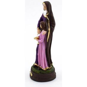 Imagem Santa Ana Resina 15 cm Santa Ana ou Sant'Ana é a mãe de Nossa Senhora e avó de Jesus. É considerada como a padroeira das avós, das mulheres casadas, especialmente as grávidas, tornando seus partos rápidos e bem sucedidos. É também protetora das viúvas, dos navegantes e marceneiros. Dimensões: altura: 15 cm - Largura: 6,5 cm - Profundidade: 6 cm Dimensões aproximadas do produto. Produto pintado a mão, podendo sofrer variações de cores. Marca: Não Informado