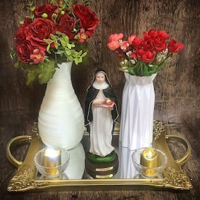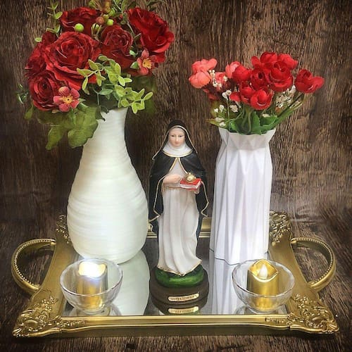 Imagem Santa Edwiges Resina 20 cm Santa Edwiges, protetora dos pobres e endividados. Diz-se que vivia com uma renda mínima, usando o restante para socorrer os pobres, enfermos, idosos, viúvas, crianças abandonadas, endividados e encarcerados, a quem ajudava pessoalmente. Dimensões: altura: 21 cm - Largura: 7 cm - Profundidade: 7 cm Dimensões aproximadas do produto. Produto pintado a mão, podendo sofrer variações de cores. Marca: Amém Decoração Religiosa Ean: 7890499231251