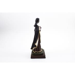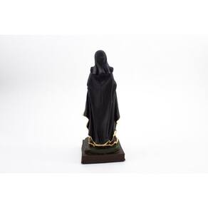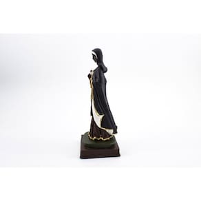 Imagem Santa Efigênia Resina 20 cm Santa Efigênia é conhecida como protetora contra incêndios, como padroeira dos militares e como auxiliadora de quem precisa da casa própria. Dimensões: altura: 20 cm - Largura: 8 cm - Profundidade: 8 cm Dimensões aproximadas do produto. Produto pintado a mão, podendo sofrer variações de cores. Efigenia Marca: Não Informado