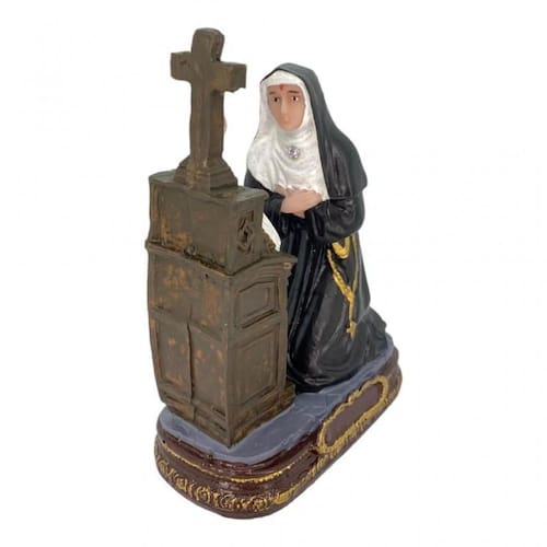 Imagem Santa Rita Ajoelhada 12 cm em Resina Esta escultura em resina trará boas energias e harmonia para sua casa, irá trazer bons fluídos. É ideal para colocar em seu altar ou completar a decoração de seu ambiente. Esculturas são itens especiais e decorativos, é um recurso que dá um toque a mais em qualquer ambiente, tem um valor espiritual e sentimental. Você pode enfeitar com um estilo próprio com muito bom gosto o seu altar ou ambiente. Aplicação: Decora sala, estantes, home office, altares, aparadores, mesa de canto ou escritório. É também uma ótima opção para presente, o excelente acabamento da pintura permite mais beleza e estilo para sua casa ou escritório. Dimensões da peça: C x L x A 8.50 cm x 4.50 cm x 12 cm tire todas as suas Dúvidas antes de concluir a compra. Iremos responder o mais breve possível. Material: 100% Resina de alta qualidade - lavável Embalagem de Envio: Caixa de papelão ondulado, plástico bolha, conforme necessidade do produto. Consulte nossos preços e condições para vendas. Fabricação própria, são todos produtos da Lua Mística, enviamos para todo o Brasil, teremos o prazer em atendê-lo. Produto artesanal pintado à mão, tinta lavável e com riqueza em detalhes e cores. Ideal para o seu altar. Ótima resistência e durabilidade. Respostas das dúvidas mais frequentes na ordem: R1: Já realizamos milhares de entregas em todo o Brasil, somos especialistas no que fazemos. R2: Assim que seu pedido for despachado, esta plataforma envia para você o código de rastreamento. R3: Enviamos o produto 100% inspecionado e conferido em nosso checkout e são embalados em embalagem de papelão e plástico bolha. R5: Iremos despachar o seu produto o mais rápido possível, assim que for confirmado pela plataforma, enviamos em até 24h. R6: Nós queremos a sua satisfação, qualquer problema iremos te auxiliar em nossos canais de comunicações. Marca: Bialluz Presentes