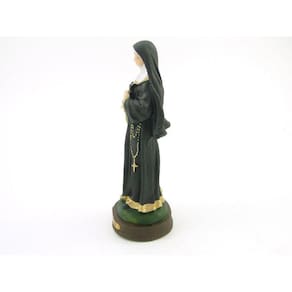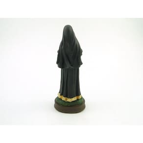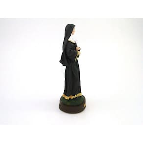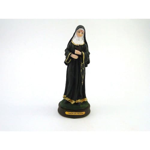 Imagem Santa Rita Resina 15 cm Santa Rita, também conhecida como Santa dos Impossíveis. Possuía um estigma em sua testa. Dimensões: altura: 15 cm - Largura: 6 cm - Profundidade: 5 cm Dimensões aproximadas do produto. Produto pintado a mão, podendo sofrer variações de cores. Marca: Não Informado