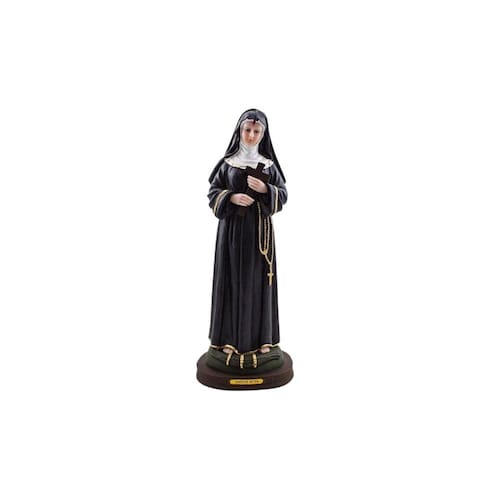 Imagem Santa Rita Resina 32 cm Santa Rita, também conhecida como Santa dos Impossíveis. Possuía um estigma em sua testa. Dimensões: altura: 32 cm - Largura: 12 cm - Profundidade: 11 cm Dimensões aproximadas do produto. Produto pintado a mão, podendo sofrer variações de cores. Marca: Não Informado