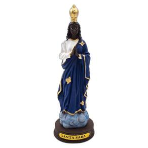 Imagem Santa Sara Resina 14 cm Santa Sara de Kali, padroeira do povo cigano, das mulheres que querem engravidar, do bom parto, dos exilados e dos desesperados. Dimensões: altura: 14 cm - Largura: 5 cm - Profundidade: 5 cm Dimensões aproximadas do produto. Produto pintado a mão, podendo sofrer variações de cores. Marca: Amém Decoração Religiosa