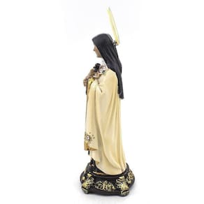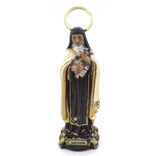 Imagem Santa Terezinha Importada Resina 15 cm Santa Teresinha do Menino Jesus e da Sagrada Face, nascida em Alençon França , também é venerada e representada como a Santa das Rosas.Dimensões: altura: 15 cm - Largura: 5 cm - Profundidade: 5 cmDimensões aproximadas do produto.Produto pintado a mão, podendo sofrer variações de cores. Marca: Amém Decoração Religiosa