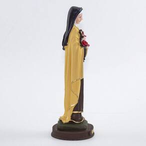Imagem Santa Terezinha Resina 20 cm Santa Teresinha do Menino Jesus e da Sagrada Face, nascida em Alençon França , também é venerada e representada como a Santa das Rosas. Dimensões: altura: 21 cm - Largura: 8 cm - Profundidade: 7 cm Dimensões aproximadas do produto. Produto pintado a mão, podendo sofrer variações de cores. Marca: Amém Decoração Religiosa
