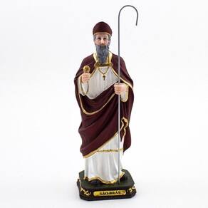 Imagem São Brás Resina 20 cm São Brás, médico e Bispo do Sebaste na Armênia, era conhecido por obter curas milagrosas, tornou-se padroeiro das enfermidades da garganta e dos laringologistas. Dimensões: altura: 20 cm - Largura: 7 cm - Profundidade: 6 cm Dimensões aproximadas do produto. Produto pintado a mão, podendo sofrer variações de cores. Sao, braz, bráz, bras