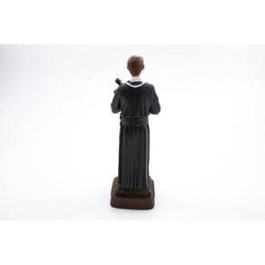 Imagem São Geraldo Resina 15 cm São Geraldo Majella ou São Gerardo Majella é o padroeiro dos alfaiates, das pessoas acusadas falsamente, das grávidas, das mães, das boas confissões, da cidade italiana Muro Lucano, dos porteiros e do movimento Pró-vida. Dimensões: altura: 15 cm - Largura: 5 cm - Profundidade: 4 cm Dimensões aproximadas do produto. Produto pintado a mão, podendo sofrer variações de cores. Marca: Não Informado