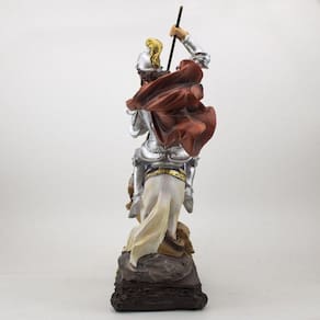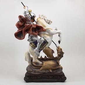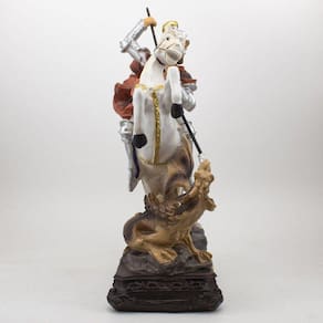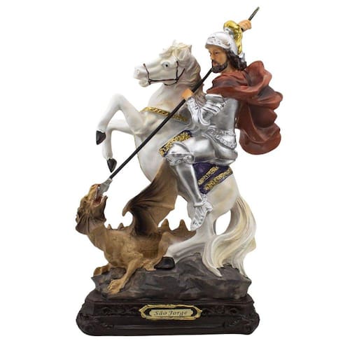 Imagem São Jorge Importada Resina 44 cm São Jorge é representado como um guerreiro montado em um cavalo branco, lutando com um dragão com sua lança.Dimensões: altura: 44 cm - Largura: 22,5 cm - Profundidade: 22 cmDimensões aproximadas do produto. Marca: Amém Decoração Religiosa