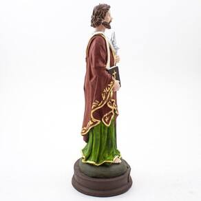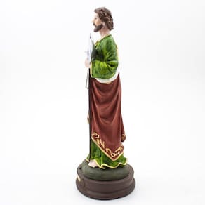 Imagem São Judas Resina 20 cm São Judas Tadeu é considerado o santo das causas perdidas ou impossíveis. Dimensões: altura: 22 cm - Largura: 9,5 cm - Profundidade: 7,5 cm Dimensões aproximadas do produto. Produto pintado a mão, podendo sofrer variações de cores. Marca: Não Informado