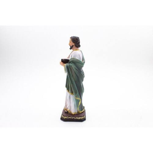 Imagem São Lucas Importada Resina 20 cm São Lucas nasceu em Antioquia da Síria, é considerado o Padroeiro dos médicos, por também ele ter exercido essa profissão. Foi convertido pelo apóstolo , do qual se tornou inseparável e fiel companheiro de missão. Dimensões: altura: 20,5 cm - Largura: 7 cm - Profundidade: 6,5 cm Dimensões aproximadas do produto. Marca: Não Informado
