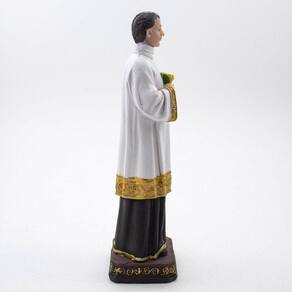 Imagem São Luis Importada Resina 20 cm São Luís Gonzaga, filho de Marta Tana di Sántena e de Ferrante Gonzaga, nasceu em 1568 na Corte de Castiglione, Itália. Com dez anos de idade, ja dava testemunho do Evangelho em sua corte e se consagrou a Nossa Senhora. Aos 14 anos decidiu renunciar aos bens materiais e seguir os caminhos da fé e ingressou no noviciado jesuíta. Após isso, foi para Roma iniciar os estudos de Teologia e entrou para a Companhia de Jesus onde viveu por seis anos. Uma grande epidemia de várias doenças se espalhou por Roma, deixando muitas vítimas. Compadecido com os doentes, com apenas 23 anos Luís adoeceu e acabou falecendo, no dia 21 de junho de 1591. Foi canonizado pelo Papa Bento XIII em 1726, sendo proclamado Patrono da Juventude. Dimensões: altura: 20 cm - Largura: 6 cm - Profundidade: 5 cm Dimensões aproximadas do produto. Produto pintado a mão, podendo sofrer variações de cores. Luiz, luíz Marca: Amém Decoração Religiosa Ean: 6988030230229