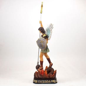 Imagem São Miguel Arcanjo Lança Importado Resina 31 cm Arcanjo, do latim archangelus é o anjo principal ou anjo da mais alta ordem a oitava na hierarquia celeste. Segundo a mesma Bíblia os arcanjos são sete mas apenas três São mencionados: Miguel, Rafael e Gabriel. Miguel, Michael ou Micha, é um arcanjo nas doutrinas religiosas cristãs, judaicas e islâmicas. Os católicos, anglicanos, ortodoxos e luteranos se referem a ele como São Miguel Arcanjo ou simplesmente como São Miguel. É percebido como o protetor do povo de Deus, sendo assim, nós que, segundo a Tradição, somos o novo povo de Deus, devemos pedir, constantemente, a sua proteção. daniel 12, 1 Os outros podem servir como referência, mas não são doutrina. - Ariel, Azrael, Chamuel e Jofiel. Dimensões: altura: 42 cm Com Lança - Altura: 31 cm Sem Lança - Largura: 18 cm - Profundidade: 12 cm Dimensões aproximadas do produto. Marca: Amém Decoração Religiosa Ean: 6988051083118