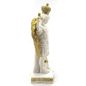 Imagem São Miguel Arcanjo Monte Gargano Coroa Importado Resina Branco 13 cm Arcanjo, do latim archangelus é o anjo principal ou anjo da mais alta ordem a oitava na hierarquia celeste. Segundo a mesma Bíblia os arcanjos são sete mas apenas três São mencionados: Miguel, Rafael e Gabriel. Miguel, Michael ou Micha, é um arcanjo nas doutrinas religiosas cristãs, judaicas e islâmicas. Os católicos, anglicanos, ortodoxos e luteranos se referem a ele como São Miguel Arcanjo ou simplesmente como São Miguel. É percebido como o protetor do povo de Deus, sendo assim, nós que, segundo a Tradição, somos o novo povo de Deus, devemos pedir, constantemente, a sua proteção. daniel 12, 1 Os outros podem servir como referência, mas não são doutrina. - Ariel, Azrael, Chamuel e Jofiel. Dimensões: altura: 13 cm - Largura: 6 cm - Profundidade: 4 cm Dimensões aproximadas do produto. Marca: Amém Decoração Religiosa Ean: 6988051083071
