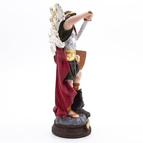 Imagem São Miguel Arcanjo Resina 20 cm Arcanjo, do latim archangelus é o anjo principal ou anjo da mais alta ordem a oitava na hierarquia celeste. Segundo a mesma Bíblia os arcanjos são sete mas apenas três São mencionados: Miguel, Rafael e Gabriel. Miguel, Michael ou Micha, é um arcanjo nas doutrinas religiosas cristãs, judaicas e islâmicas. Os católicos, anglicanos, ortodoxos e luteranos se referem a ele como São Miguel Arcanjo ou simplesmente como São Miguel. É percebido como o protetor do povo de Deus, sendo assim, nós que, segundo a Tradição, somos o novo povo de Deus, devemos pedir, constantemente, a sua proteção. daniel 12, 1 Os outros podem servir como referência, mas não são doutrina. - Ariel, Azrael, Chamuel e Jofiel. Dimensões: altura: 22 cm - Largura: 14 cm - Profundidade: 8 cm Dimensões aproximadas do produto. Produto pintado a mão, podendo sofrer variações de cores. Marca: Amém Decoração Religiosa