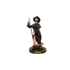 Imagem São Roque Resina 20 cm São Roque nasceu em Montpellier, na França. Também é invocado como padroeiro dos inválidos, dos cirurgiões e do gado. Ele curou muitos fazendo apenas o sinal da cruz. dizia-se que a peste fugia de São Roque. Dimensões: altura: 21 cm - Largura: 11 cm - Profundidade: 8 cm Dimensões aproximadas do produto. Produto pintado a mão, podendo sofrer variações de cores. Marca: Não Informado
