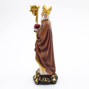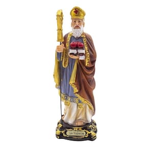 Imagem São Valentim Importada Resina 14 cm O imperador Cláudio II, durante seu governo, proibiu a realização de casamentos em seu reino. No entanto, um bispo romano Valentim continuou a celebrar casamentos, mesmo com a proibição do imperador. Descoberto Valentim foi preso e condenado à morte. Enquanto preso, muitos jovens atiravam flores e bilhetes dizendo que ainda acreditavam no amor. Entre ele estava uma jovem cega, Artérias, filha do carcereiro, a qual conseguiu a permissão do pai para visitar Valentim. Os dois acabaram apaixonando-se e, milagrosamente, a jovem recuperou a visão. O bispo chegou a escrever uma carta de amor para a jovem com a seguinte assinatura: de seu Valentim, expressão ainda hoje utilizada. Valentim foi decapitado em 14 de fevereiro de 270. Por isso o Dia dos Namorados em várias partes do mundo passou a ser chamado em inglês de Valentines day ou, dia dos Valentins, e é comemorado nesse dia.Dimensões: altura: 14 cm - Largura: 5 cm - Profundidade: 5 cmDimensões aproximadas do produto. Marca: Amém Decoração Religiosa