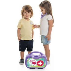 Na brincadeira de faz de conta vale todas as profissões. O Meu Consultório vem com diversos acessórios, idênticos ao que um médico(a) de verdade usa para cuidar do dodói. Tudo fica organizado dentro da prática maleta, que contém vários acessórios para brincar de médico(a), entre eles tem o termômetro, o medidor de pressão, o estetoscópio, o nebulizador e até um mini prontuário.