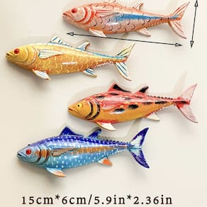 Material: plástico Tamanho: 15x5cm Peso: 55gCreative Fish Design: este conjunto apresenta quatro ímãs de peixe 3D lindamente pintados com cores vivas e texturas detalhadas, perfeitos para adicionar um toque divertido e vibrante a qualquer espaço. Material de resina de alta qualidade: feitos de resina durável, esses ímãs são leves, resistentes e projetados para durar, ao mesmo tempo em que adicionam um elemento divertido à decoração de sua casa ou escritório. Perfeitos para casa e cozinha: ideais para decorar geladeiras, quadros brancos ou armários, esses ímãs trazem um toque oceânico a qualquer ambiente, tornando-os um ótimo complemento para sua cozinha ou espaço de trabalho. Compacto e funcional: cada ímã de peixe mede 15x5cm e pesa 55g, o que o torna o tamanho perfeito para guardar fotos, notas ou obras de arte em qualquer superfície de metal sem ocupar muito espaço. Ótimo para escritório ou escola: esses ímãs de peixe coloridos são uma forma divertida e decorativa de organizar seu quadro branco ou exibir suas fotos favoritas no escritório, na cozinha ou na área de estudo.