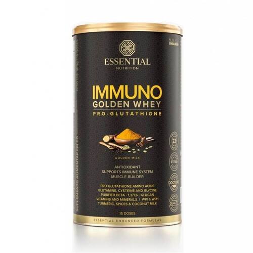 Immuno golden whey pro glutathione lata - sabor: golden milk 480g Immuno golden whey pro glutathione lata - essential nurition uma explosão de sabores e benefícios immuno golden whey é a evolução do whey protein aliado às propriedades e ao sabor do golden milk, bebida tradicional da medicina ayurvédica. Uma fórmula pensada para potencializar seus benefícios. Combinando nosso blend de whey protein, aminoácidos, vitaminas e minerais às especiarias e ao sabor e cremosidade do leite de coco, chegamos a uma opção deliciosa e ainda mais rica. uma fórmula de ouro para sua imunidade. para criar immuno golden whey, unimos nossa fórmula exclusiva com a cúrcuma, o leite de coco e a melhor seleção de especiarias: pimentas preta e vermelha, canela, gengibre e cardamomo. as especiarias atuam em sinergia com nosso blend de whey protein isolado e hidrolisado, os aminoácidos cisteína, glicina e glutamina - precursores da glutationa -, além da taurina, da betaglucana de levedura e das vitaminas e minerais, cofatores no processo de síntese. glutationa e a sua importância. a glutationa é um importante antioxidante relacionado ao sistema imune e produzido naturalmente pelo nosso corpo. Com o passar dos anos, no entanto, essa produção diminui. immuno whey - pro-glutathione é fonte dos principais precursores de glutationa, além de outros nutrientes envolvidos no funcionamento do sistema imune. cisteína + glutamina + glicina a glutationa é produzida a partir de nutrientes específicos: aminoácidos que formam a sua estrutura cisteína, glutamina e glicina , vitaminas e minerais que participam das reações complementares durante o seu processo de síntese vitamina b2, magnésio e selênio . entenda como funciona: antioxidantes x radicais livres. pense em todas as toxinas radicais livres, , produtos de limpeza, radiação ou metais pesados, por exemplo , com as quais o seu organismo entra em contato diariamente, além da exposição frequente ao . todos esses processos fazem com que nossas células produzam substâncias residuais - são os radicais livres. São moléculas instáveis que, em excesso, causam um desequilíbrio com o sistema de defesa, levando a um estado de oxidativo, que pode ser o gatilho para diversas patologias. benefícios: - 22g de proteínas;- aminoácidos glicina, cisteína e glutamina;- betaglucana de levedura beta - 1,3/1,6 - glucan ;- cúrcuma;- leite de coco;- seleção de especiarias gengibre, canela, pimenta ; contém: - whey protein hidrolisado e isolado thermax 690 e provon 292 - aminoácidos precursores da produção natural de glutationa cisteína, glicina e glutamina - vitaminas e minerais, cofatores na produção natural de glutationa- taurina- purified beta - 1,3/1,6 - glucan- cúrcuma- seleção de especiarias pimentas preta e vermelha, canela, cardamomo e gengibre - leite de coco- estévia não contém: - proteínas concentradas- caseína- açúcar- glúten- lactose- conservantes- adoçantes artificiais- aromas artificiais- corantes artificiais