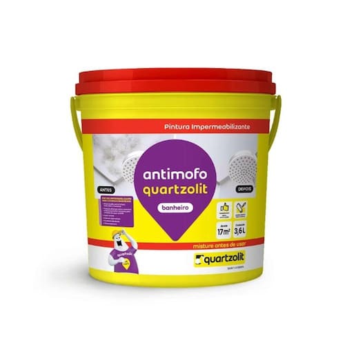 O antimofo quartzolit é uma pintura impermeabilizante de excelente acabamento fosco para teto de banheiros, cozinhas, saunas e outros ambientes sujeitos à umidade e ao vapor d?água. O produto evita o aparecimento de manchas de bolor e descascamento de tintas provocados pelo vapor.