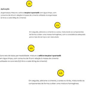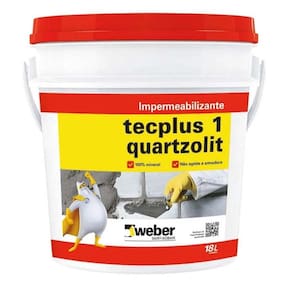 IMPERMEABILIZANTE TECPLUS 18L QUARTZOLITEmbalagem: 18 L tecplus 1 quartzolit é um aditivo líquido impermeabilizante para concreto e argamassa, quando é adicionado à água de amassamento proporciona a redução da permeabilidade para evitar a umidade e infiltração d’água na argamassa.Aumenta a coesão das argamassas, para melhor trabalhabilidade. Pode ser aplicado concretos e argamassas em elementos que estejam expostos à umidade e à pressão da água. Fácil adição a argamassas e concretos Maior garantia e durabilidade da obra Amplo uso na construção civil Isento de cloretos que agridem a armadura da estruturaCor: Branca leitosaValidade: 24 meses (vide marcação na embalagem)Sobre este produtoHomogeneíze o produto na embalagem ou misture tecplus 1 quartzolit com uma haste metálica até obter a completa homogeneização.Evite aplicação da argamassa/concreto sobre superfícies expostas diretamente ao sol ou se houver risco de chuva.Verifique suas ferramentas de trabalho.Use EPIsCaracterísticas e Benefícios* Aditivo para impermeabilização de argamassas de areia e cimento e concretos* Amplo uso na construção civil* Ganho de coesão e trabalhabilidade nas argamassas* Isento de cloretos que agridem a armadura da estruturaContra indicado para* Gesso ou argamassa de gesso. * Misturas onde o aglutinante não seja cimento Portland.* Imagens meramente ilustrativas * Marca: QUARTZOLITCódigo: 78865