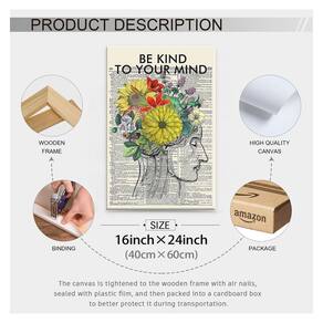 O pôster de arte de parede "Be Kind to Your Soul" combina estilo de jornal retrô com padrões florais vívidos, exalando uma atmosfera calorosa e pacífica. Este pôster não é apenas uma decoração, mas também uma expressão de uma atitude de vida. Isso nos lembra de não esquecer de prestar atenção ao nosso mundo interior em uma vida em ritmo acelerado. O pôster de arte combina estilo de jornal retrô com padrões florais para criar uma atmosfera acolhedora e artística. Essa decoração não apenas embeleza o espaço, mas também transmite uma atitude positiva, lembrando-nos de prestar atenção à nossa saúde mental em uma vida agitada. As flores brilhantes e as palavras quentes se complementam, tornando todos os dias cheios de energia positiva e nos inspirando a valorizar a tranquilidade e a beleza em nossos corações. Este pôster sem dúvida se tornará uma paisagem única em casa, infectando todos que entram neste espaço em todos os momentos - Pôster de jornal: o tamanho dos pôsteres de parede vintage é de 40,6 x 61 cm, este pôster de jornal é embrulhado e esticado sobre moldura de madeira, para criar um efeito 3D imersivo que torna a obra de arte ótima - Cartazes duráveis e de alta qualidade: impressões vintage estéticas Use tinta de proteção ambiental de alta qualidade, não desbota facilmente, cores vivas, à prova d'água, resistente a UV, sem odor. Os pôsteres modernos adicionarão um toque de estilo e personalidade às suas paredes - Cartazes de saúde mental: o pôster de arte de parede "Be Kind to Your Soul" combina estilo de jornal retrô com padrões florais vívidos, exalando uma atmosfera calorosa e pacífica. A arte de parede de jornal pode fornecer decoração para cozinha, sala de jantar, bar, dormitório, sala de estar, quarto, apartamento, hotel, escritório - Presentes quentinhos: o pôster de arte combina estilo de jornal retrô com padrões florais para criar uma atmosfera acolhedora e artística. Seja dado como aniversário, Natal, presente de férias, inauguração de casa ou qualquer outra ocasião especial, o pôster seja gentil surpreenderá e encantará o destinatário - Serviço pós-venda: Valorizamos muito sua experiência de compra, se você tiver algum problema com as impressões de arte vintage, por e-mail na primeira vez. Esperamos resolver quaisquer problemas que você possa encontrar de forma rápida e eficiente