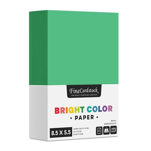 Estes papéis coloridos brilhantes são feitos de papel Bond de 24 libras/60 lb de texto/90 GSM. Cada folha mede 8,5 x 5,5 polegadas (tamanho de meia letra).