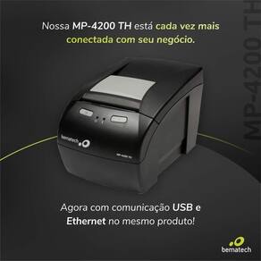 Impressora bematech mp4200 ethernet usb A evolução das impressoras térmicas Proporciona alto desempenho e qualidade de impressão, que resulta em uma maior agilidade no processo de atendimento ao cliente, aumentando sua produtividade e o seu lucro. Com o sistema easy recovery system o atolamento de papel é resolvido de forma rápida para voltar a trabalhar normalmente. Imprime textos e gráficos a uma velocidade de 250 mm/s e com alta qualidade. Realize atendimentos de uma maneira muito mais rápida e com maior qualidade. Método Transferência térmica direta Velocidade 250mm/s para textos & gráficos Resolução 8 pontos/mm 203 x 203 dpi Densidade do ponto 0,125 mm x 0,125 mm Comprimento 58,76,80 and 82,5 mm 640 dots/line maximum Caracteres por linha 24, 32, 48, 64 esc/bema ou 21, 28, 42, 56 esc/pos Alimentação de papel Bobina interna Interface de comunicação Interface padrão: usb. Segunda interface, ethernet Set de comandos Esc/bema & esc/pos Drivers Windows dll seven 32 & 64 bits, windows 8, pos ready 2009, pos ready 7, windows 10 & spooler for windows, linux cups spooler, opos drivers, java pos drivers. Dimensões 150mm de largura x 218mm de comprimento x 146mm de altura Peso 1,1 kg peso líquido / 1,2kg peso bruto Código de barras Ean-8, ean-13, code 39, code 93, code 128 a, b and c , itf, codabar, upc-a, upc-e, isbn, msi, plessey, pdf-417, qr code, datamatrix, maxicode 3 anos. Para equipamento fabricados a partir de 21 de agosto de 2017 Espessura do papel 48 a 70 um
