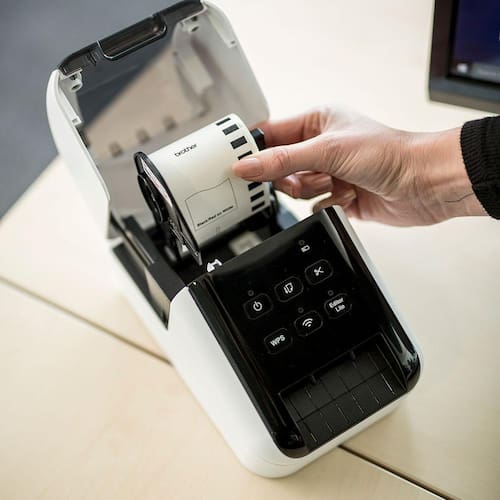 A impressora QL-810w chega a imprimir até 110 etiquetas por minuto, com texto em cor preta de 300dpi de resolução. Compatível com fitas DK, a QL 810 proporciona uma grande variedade de opções de uso.