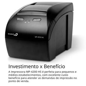 A Impressora Térmica Não Fiscal Bematech MP-4200 HS USB Serial e Ethernet garante agilidade em toda operação que demande a impressão de comprovantes térmicos. Ofereça mais agilidade, performance e produtividade no seu frente de caixa com a Impressora Não Fiscal Bematech MP-4200 HS. É o mais novo modelo de impressora térmica com qualidade de impressão e desempenho único. Ideal para pequenos e médios estabelecimentos, a Impressora MP-4200 HS conta com excelente custo benefício e atende as demandas de impressão do seu PDV, aumentando a produtividade no seu frente de caixa. Para agilizar o atendimento no caixa, a Impressora MP-4200 HS corta automaticamente os cupons em cada impressão. A Impressora também imprime cupons NFC-e, SAT e MFE. Esse modelo conta com 3 interfaces de comunicação: USB, Serial e Ethernet. Além disso, a Impressora Bematech MP-4200 HS é 100% compatível com os modelos i8 e i9 e pronta para trabalhar com os principais softwares de automação comercial.